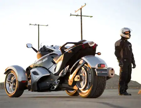 Очень, очень стильным транспортом получился новый родстер Can Am Spyder. Он имеет три колеса, и совмещает в себе преимущества открытого мотоцикла и традиционного автомобиля с убирающейся крышей. Родстер создан в спортивном стиле и для спортивных целей. Конструкция обеспечивает стабильность во время стоянки или езды, а также, в отличие от мотоцикла, обеспечивает большую безопасность. Can Am Spyder обладает такими опциями как ABS и контроль устойчивости и станет отличным подарком тем, кто не терпит езды в замкнутом пространстве, но боится за устойчивость мотоцикла.