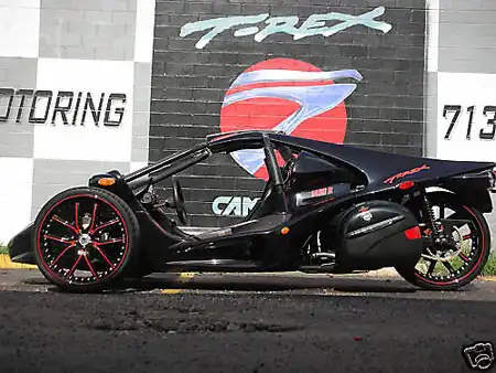 На аукционе "eBay" уже сейчас можно приобрести удивительный трехколесный спортбайк "T-Rex". Это транспортное средство легализовано, и на нём спокойно можно ездить по дорогам. С виду транспорт похож на мотоцикл и спорткар. 1 заднее колесо и два передних, ни одной двери и руль. Разгон у этого средства превосходит Lamborghini Gallardo. Стоимость на аукционе - $41600