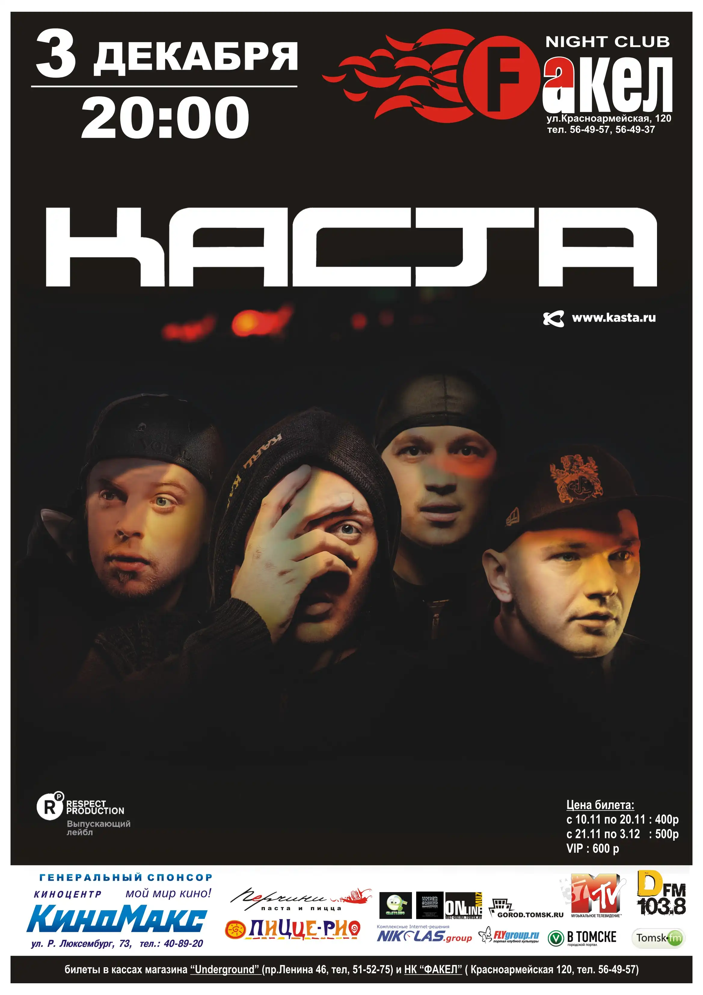 3 Декабря состоится концерт группы Каста в ночном клубе Факел,начало концерта в 20:00. Презентация НОВОГО альбома "Быль в глаза" + лучшее из старого.