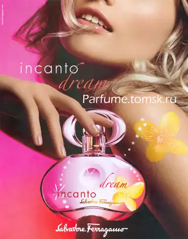 Свежий, фруктово-цветочный, древесный аромат Incanto Dream ("Прикосновение мечты") адресован молодой, жизнерадостной и романтичной женщине, оптимистичной и уверенной в себе. Искренняя, открытая и увлеченная она живет полной жизнью, наслаждаясь каждым его мгновением. Incanto Dream от Salvatore Ferragamo – это игривой блаженство, созданное вашим воображением. Он является воплощением радости от предвкушения будущего счастья, от веры, что все мечты превратятся в реальность. Incanto Dream – это волна искрящейся фруктовой свежести, полной красок и фантазий. Радостные фруктовые начальные ноты состоят из искрящегося ананаса, сверкающей черной смородины, экзотического манго и сочного яблока. «Сердце» раскрывается элегантным букетом из пиона и фрезии, а «база» состоит из белого мускуса и сандала.