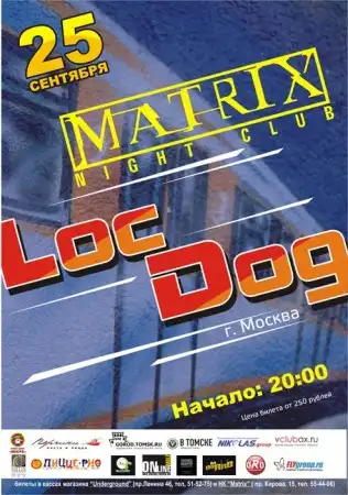 25 сентября(пятница) в НК “Matrix” пройдет концерт московского рэп исполнителя Loc-Dog.