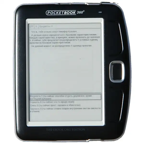 Электронная книга имеет внутреннюю и внешнюю память. В качестве внешней памяти используются карты MicroSD, слот для них находится рядом с кнопкой "включение". На нижнем торце устройства имеется небольшой разъем USB. Он используется не только для передачи данных, но и для зарядки.PocketBook 360 наиболее всеяден в части поддерживаемых форматов. Среди них - FB2, TXT, PDF, DJVU, RTF, HTML, PRC, CHM, EPUB, DOC и графические форматы файлов JPEG, BMP, GIFЦена: 11 350 рублейДобро пожаловать в новый магазин DNS!