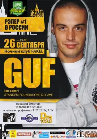НК ФАКЕЛ Сегодня кажется, что песни с "Домов" будут ничуть не хуже качать залы чем когда-то качали "Качели" Centr'a, что будут гореть глаза, а Гуфа будут упоминать как самого "собирающего" артиста. Презентация сольного альбома Guf'а "Дома" в Москве собрала аншлаг - на концерте присутствовало до 3 000 зрителей.