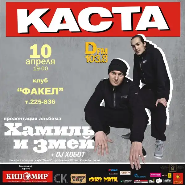 Живые классики нашего хип-хопа (а заодно «Легенды MTV»), «Каста» в этом году выпустила свой новый альбом «ХЗ», совместное детище двух из четырёх нынешних участников коллектива, Хамиля и Змея, своеобразного дуэта внутри группы. При этом они как будто и не прекращали сыпать новостями ещё с момента выхода предыдущей пластинки: рэп-группировка и выступала с большими концертами, и получала премии («Золотая Горгулья» от «16 Тонн» в их числе), и записывала эксклюзивные треки, как, например, яркий дуэт с «Animal Джаz» или даже кавер на песню «Машины Времени». Им есть, чем гордиться: как ни крути, это действительно главный хип-хоп-коллектив огромной страны. Успешные альбомы, миллионные тиражи, видеоклипы, ставшие живой классикой, награды всех музыкальных каналов – родной Ростов благодаря им вполне может считаться столицей русского рэпа, без всяких скидок. «Каста» – это не только про «читку», но и про музыку – их песни популярны и потому, что парням не откажешь в умении создать действительно запоминающуюся вещь, сделать так, что трек играет на подкорке целого поколения, нравится и критикам-снобам, и обычному школьнику, и «нашим людям». На каждый концерт парни готовят что-то особенное, соответствующее моменту и поводу – впрочем, все самые долгожданные хиты в этот раз тоже, надо думать, прозвучат.