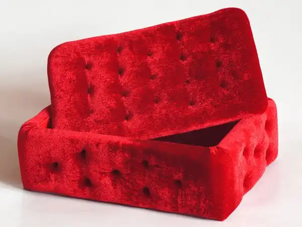 Мягкая, приятная на ощупь, из красного бархата, размером 20х15х5см. - вместительная, отличный подарок.