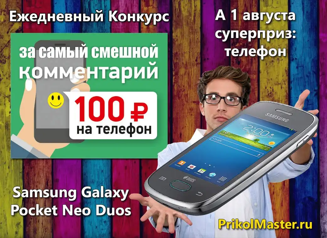 Теперь проводится ежедневный конкурс с ценными и денежными призами. Принять участие очень просто. Достаточно придумать смешную подпись к самому первому посту с таймером. Побеждает тот, за чей комментарий проголосуют наши пользователи и ваши друзья большим количеством "Лайков".