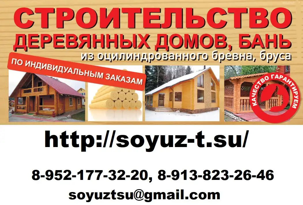 Компания «Союз-Т» предлагает свои услуги в строительстве деревянных домов в любом исполнении: рубленные дома, оцилиндрованное бревно, профилированный брус массив, клееный профилированный брус, каркас. Специалистами нашей компании накоплен огромный опыт в изготовлении и строительстве деревянных домов в разных регионах России с различными климатическими условиями: Москва, Санкт-Петербург, Волгоград, Самара, Анапа, Томск, Новосибирск, Кемерово, Красноярск, Чита, Уссурийск, Южно-Сахалинск. Наши дома радуют людей, доверивших строительство своих домов и реализацию своих проектов нам.