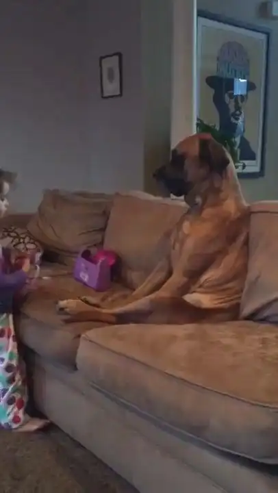Терпеливый пес на приеме у маленького