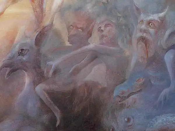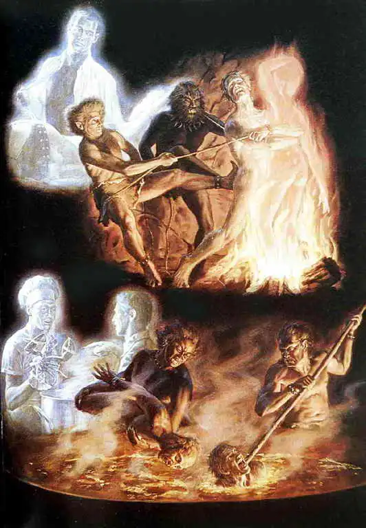 Видов наказания в аду было много: меня то рвали на куски какие-то злобные звероподобные существа (это были руру и кравьяды — на земле они не водятся — прим. автора), то до костей объедали термиты. Потом поджаривали на медной сковородке, вымораживали в леднике, протаскивали сквозь колючий кустарник, сдирая живьем кожу. Многие виды мучений, так или иначе, известны на Земле, но что все они будут применены ко мне — такого я не ожидал! Некоторые запомнились намертво.