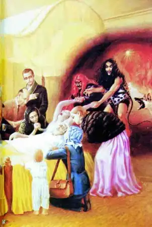 «В момент смерти человек видит посланцев бога смерти, ямадутов, которые стоят перед ним с налитыми кровью глазами, и, охваченный ужасом, он испускает мочу и кал».