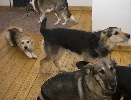 Так продолжалось около недели, но однажды я была оторвана от увлекательного чтения отчаянным кошачьим: "Ва-а-у!". Вбежав на кухню, я увидела следующую картину: кот лежал на спине, прижатый толстенькой лапой щенка, и отчаянно верещал. Нужно заметить, что щенок оказываясь в таком же положении, ни разу не издал ни одного звука.