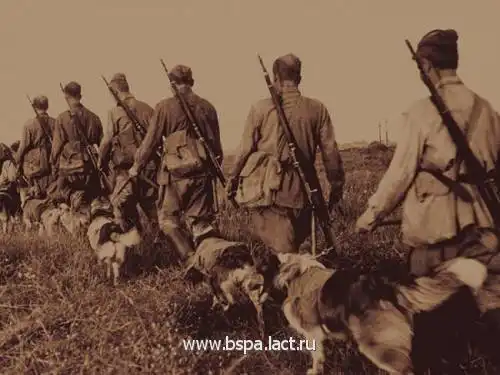 Санитарные собаки находили тяжело раненых солдат в болотах, лесах, оврагах и приводили к ним санитаров, неся на своих спинах тюки с медикаментами и перевязочным материалом.