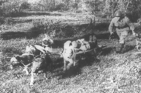 Ездовые собаки — около 15 тысяч упряжек, зимой на нартах, летом на специальных тележках под огнем и взрывами вывезли с поля боя около 700 тысяч тяжело раненых, подвезли к боевым частям 3500 тонн боеприпасов, а также доставляли питание на передовую линию фронта. Стоит отметить, что санитару за 80 человек, вынесенных с поля боя, присваивали звание Героя Советского Союза. «Каждая упряжка заменяла минимум трех-четырех санитаров. Эвакуация при помощи санупряжек осуществляется быстро и безболезненно для раненых».