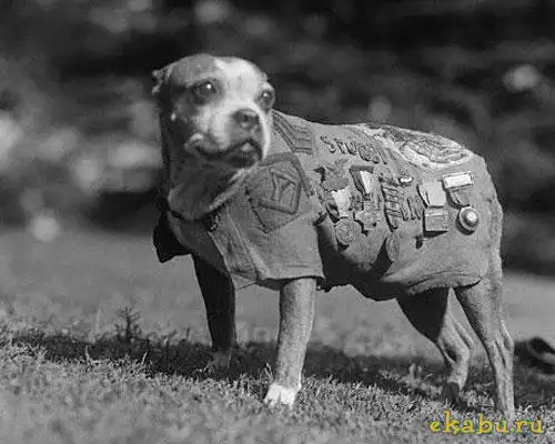 Являясь помесью пит-буля, сержант Стабби в составе сто второго пехотного полка двадцать шестого дивизиона (Янки) прошёл по полям сражений Первой мировой войны во Франции и стал талисманом боевого подразделения. Вскоре после прибытия на фронт, подразделение Стабби было атаковано газом. После это Стабби с его острым нюхом и слухом мог заранее предупреждать своё подразделение о готовящейся атаке, давая людям время надеть противогазы.