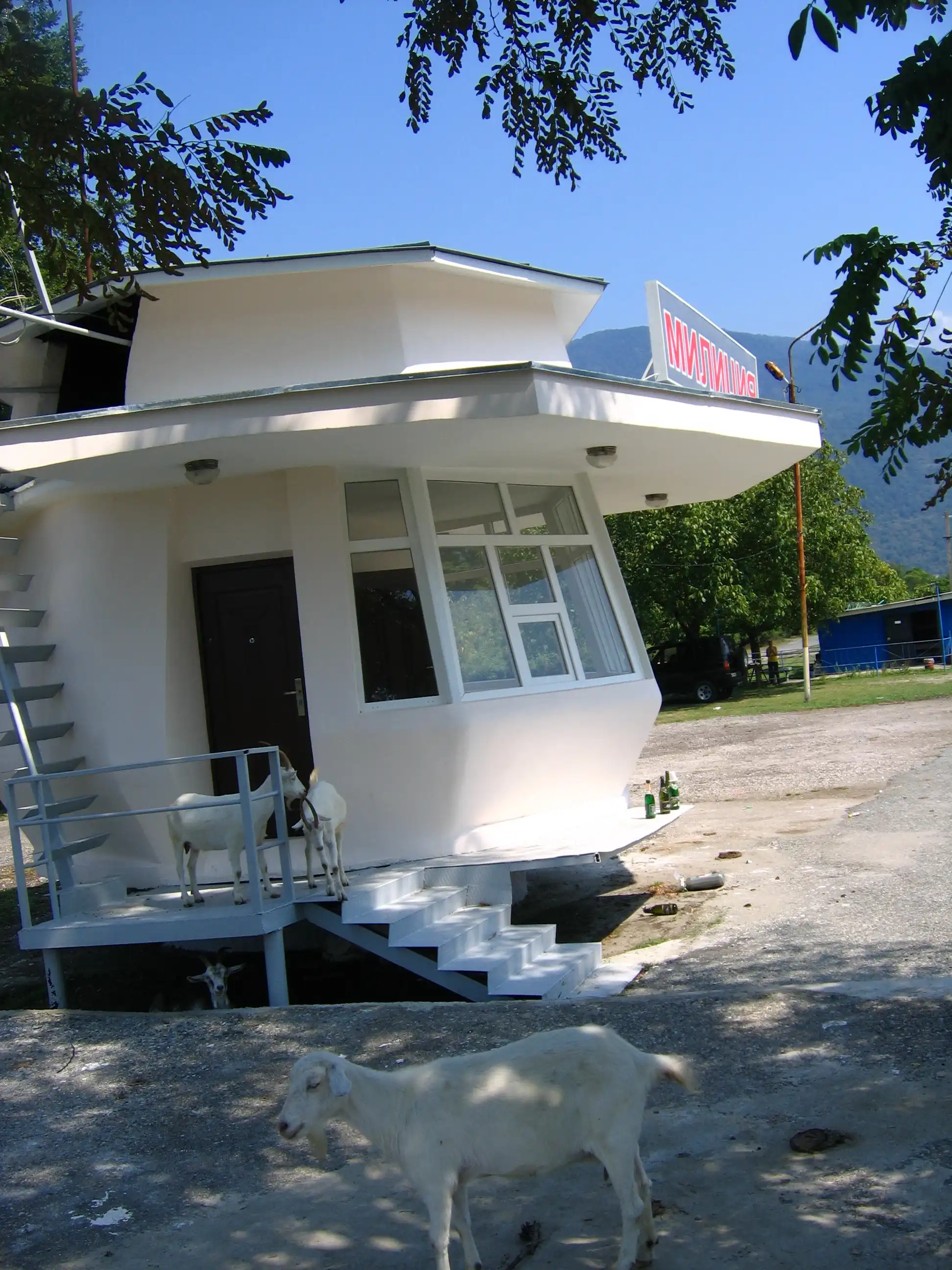 пост ГАИ. Простое кирпичное здание с большими окнами на три стороны.