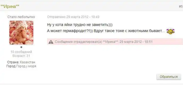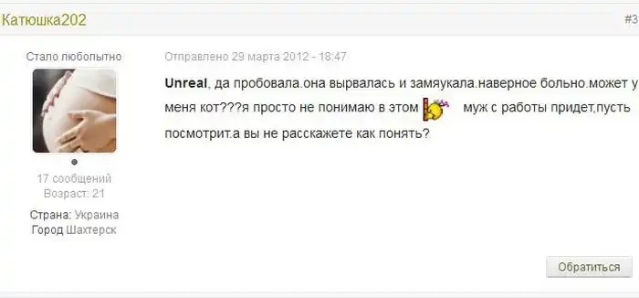 Что такое с моей кошкой?Вот такой вопрос прозвучал на одном женском форуме.Ответы посыпались градом :)