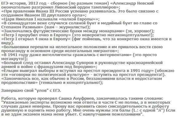 которые выдают учащиеся в сочинениях ЕГЭ 2012 по истории :)