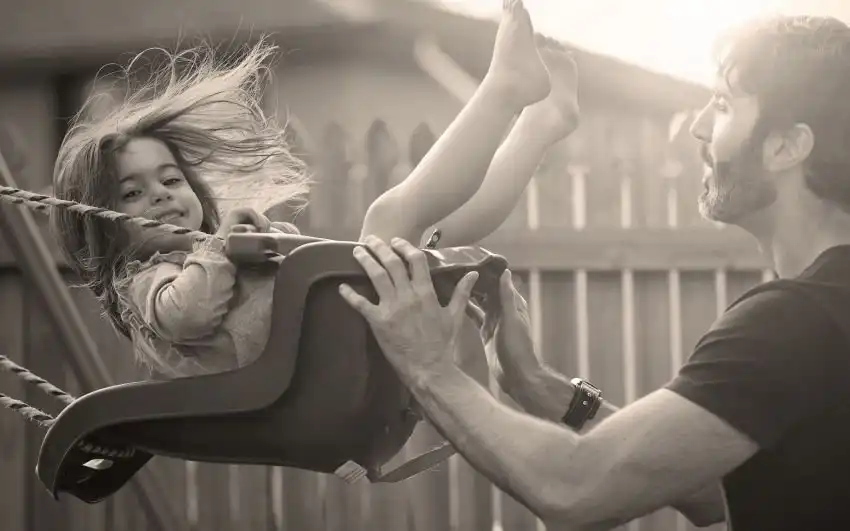 Кате было 2 года — славный период собственности, когда всё «моё» — мой горшок, мой папа, мои игрушки и т.д. Гуляет с папой во дворе. Папа её дразнит: