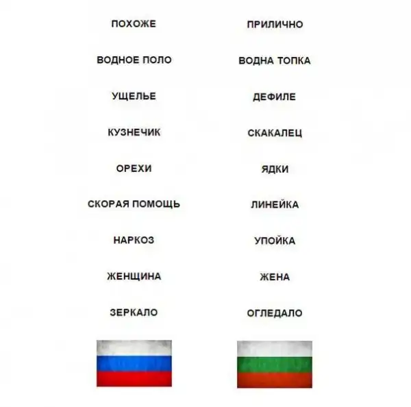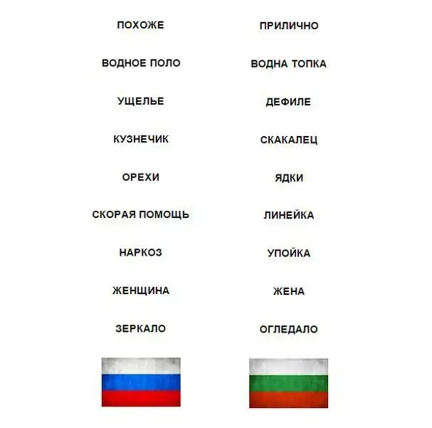 Многие слова в болгарском языке произносятся точно так же, как в русском. Только вот значение у них не то что разное, а порой совершенно противоположное.