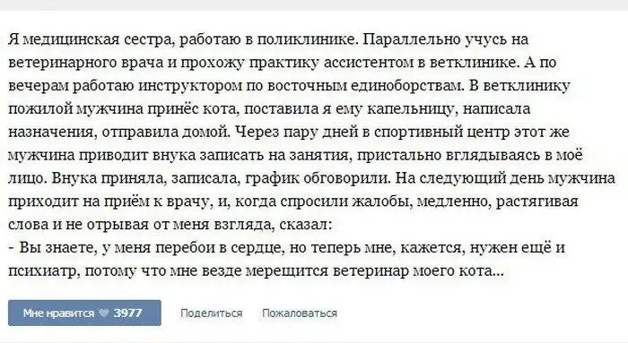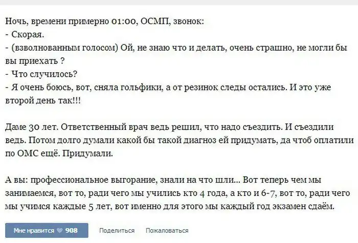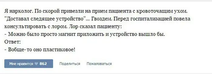 Как то давно, уронили мне пацаны лист ДСП на пальцы обеих рук. Перебили конечно, бывает. Прихожу в поликлинику, выстоял очередь. Любезная мне к хирургу. А накуя спрашивает. Рассказываю, что случилось. А это вам к врачу общей практики. Думаю может клизму пропишут, может поможет. Нет говорю - хирурга надо. Идите в ж*пу, мы знаем. Приходят тут всякие. 100 рублей за них в год по ОМС получаем, ещё и думающие. Я 15 лет стою в этой поликлинике, не болел ни разу. ТАК ПУСТЬ НАХУЙ ВЕРНУТ МНЕ МОИ ДЕНЬГИ. Ушёл, через две недели всё прошло. Спасибо регистратуре. Умеют же лечить, без вмешательства в организм.