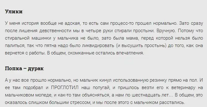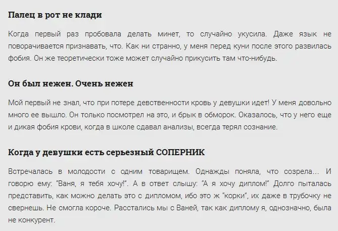 Истории неудачного первого сексуального опыта, рассказанные девушками
