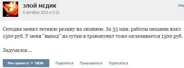 1500 за смену колес, блин хорошо я сам меняю, делов на 40 минут, домкрат потому что под одно колесо.