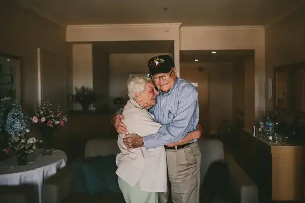 Они хихикают, как подростки, перебивают друг друга. Они рассказывают друг другу все подряд и постоянно держатся за руки. Они больше не юные влюбленные, на их лицах видны морщины - доказательство того, что с момента их последней встречи прошло 7 десятилетий.