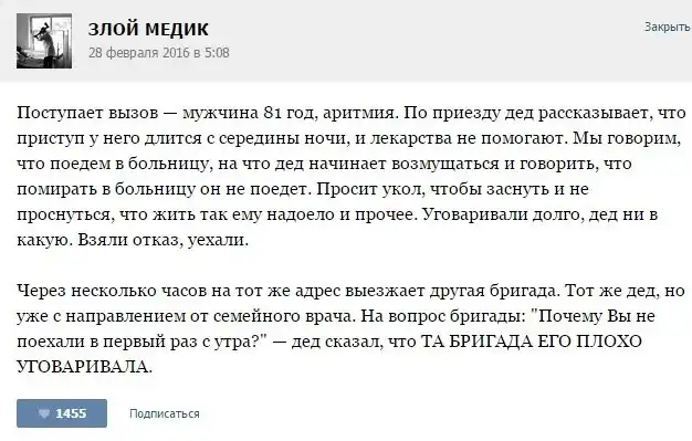 а бывает медики скорой убегают от бешеных пациентов с топором, и важно чтобы машина была рядом. Это кстати и причина почему скорая всегда проходит обутая.