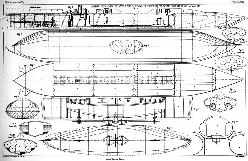Невольно возникает вопрос, а не являлся ли "суперныряльщик" мистификацией, выдуманной для поднятия престижа французского флота и запугивания его потенциальных противников? У меня на этот вопрос нет однозначного ответа. Выше представлен - тот самый чертеж, ниже - музейные модели подводной лодки.