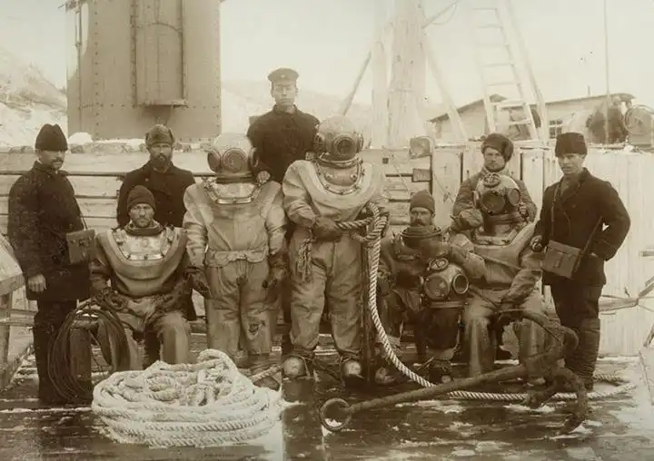 Суровые сибирские водолазы викторианской эпохи, станция Байкал, 1895 год.