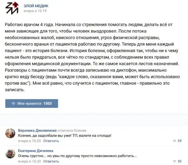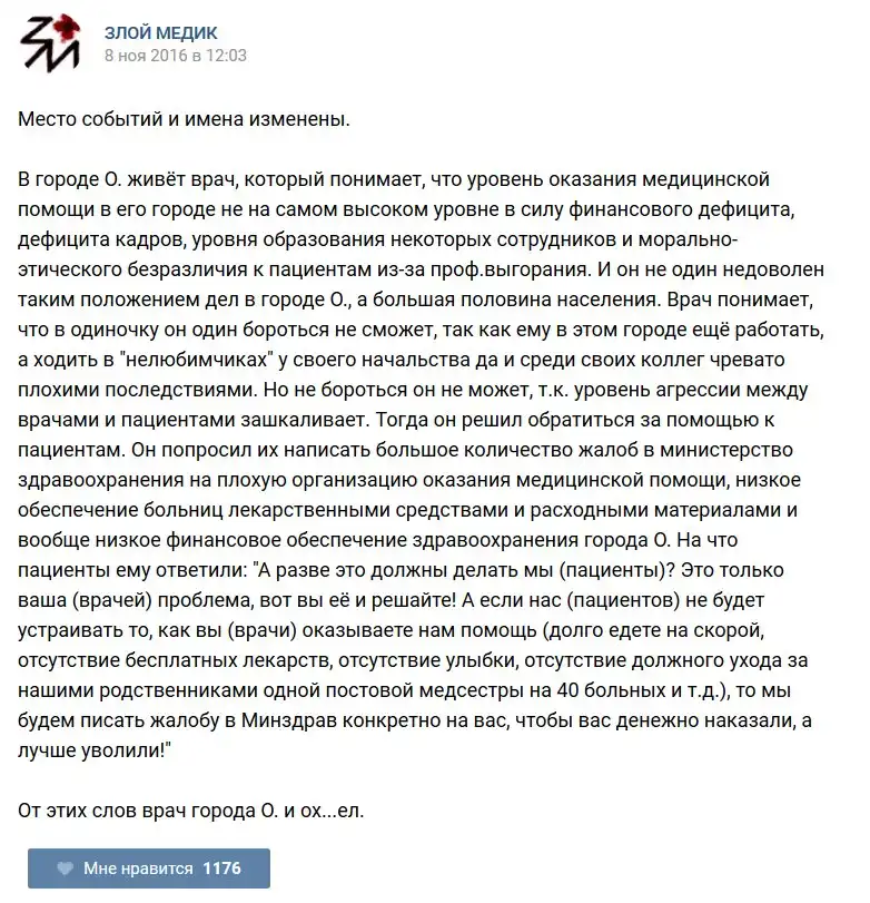 В нашей стране несколько проблем или бед, но к ним не относится медицина, но сегодня мы как раз будем говорить именно о ней. Запись с названием "Истории врачей",расскажет Вам о том, какие-же истории происходят с врачами, их пациентами и почему обе категории иногда ведут себя странно.