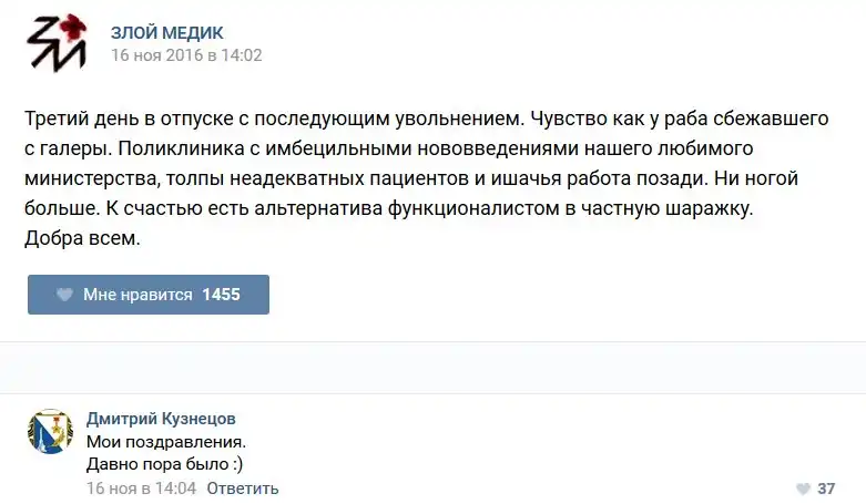 Конкретно к врачам претензий нет. Профессия у них не позавидуешь. Но блин, какая же *б-я у нас сама система. Чтобы попасть даже к терапевту - запись за две недели. За это время либо выздоровеешь, либо дуба дашь. Но если ты вдруг к нему попал и тебя отправляют к профильному - это еще, как минимум две недели. Не дай бог потребуется еще что-нибудь типа рентгена и т.п. - еще недели две. и т. д.