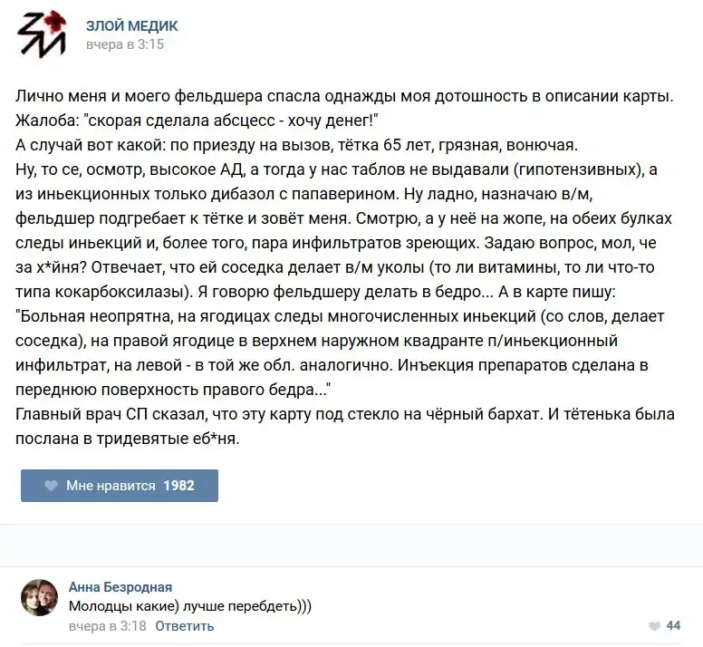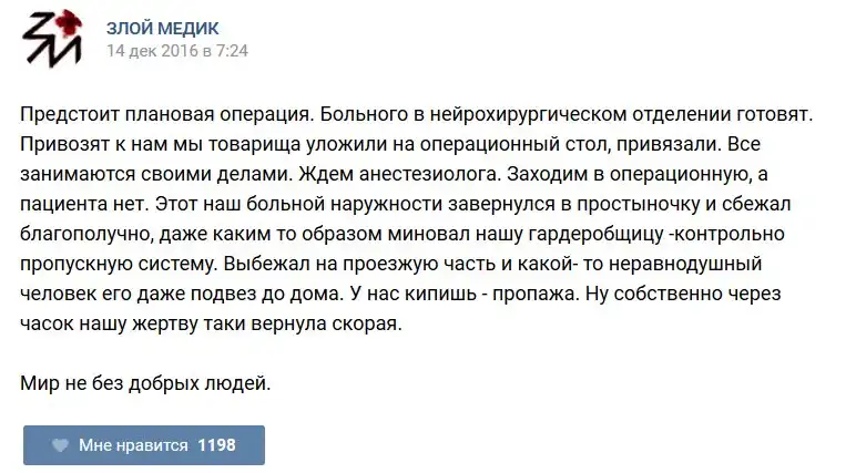 В нашей стране несколько проблем или бед, но к ним не относится медицина, но сегодня мы как раз будем говорить именно о ней. Запись с названием "Истории врачей",расскажет Вам о том, какие-же истории происходят с врачами, их пациентами и почему обе категории иногда ведут себя странно.