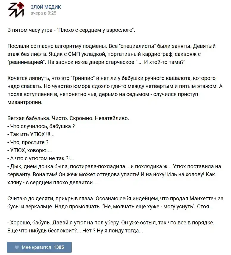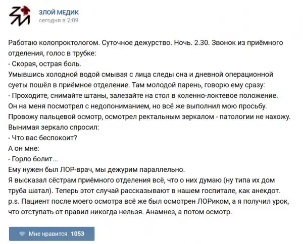 В нашей стране несколько проблем или бед, но к ним не относится медицина, но сегодня мы как раз будем говорить именно о ней. Запись с названием "Истории врачей",расскажет Вам о том, какие-же истории происходят с врачами, их пациентами и почему обе категории иногда ведут себя странно.