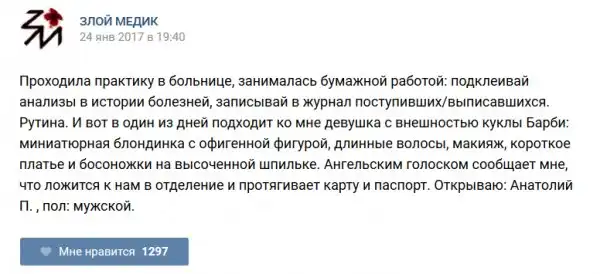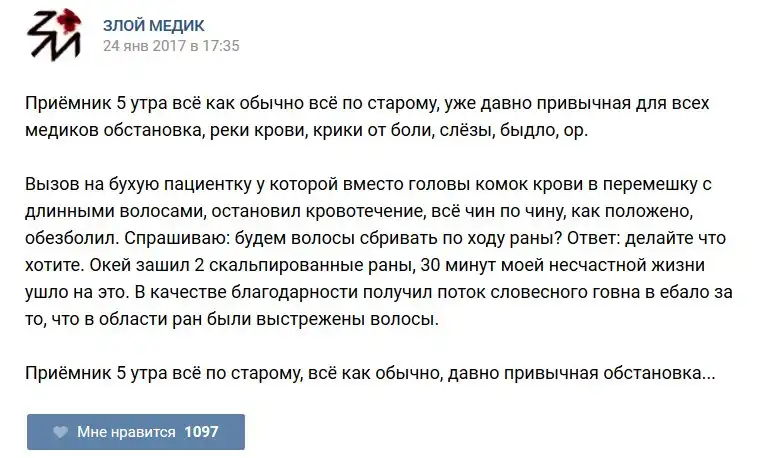 В нашей стране несколько проблем или бед, но к ним не относится медицина, но сегодня мы как раз будем говорить именно о ней. Запись с названием "Истории врачей",расскажет Вам о том, какие-же истории происходят с врачами, их пациентами и почему обе категории иногда ведут себя странно.