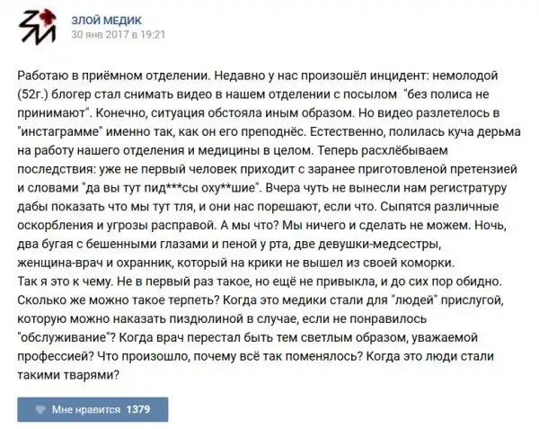 В нашей стране несколько проблем или бед, но к ним не относится медицина, но сегодня мы как раз будем говорить именно о ней. Запись с названием "Истории врачей",расскажет Вам о том, какие-же истории происходят с врачами, их пациентами и почему обе категории иногда ведут себя странно.