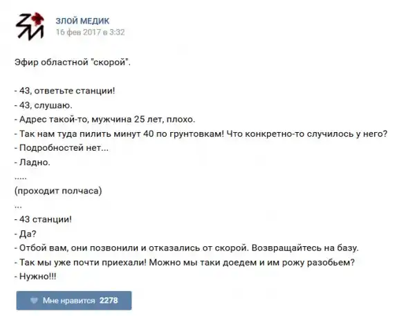 В нашей стране несколько проблем или бед, но к ним не относится медицина, но сегодня мы как раз будем говорить именно о ней. Запись с названием "Истории врачей". Злой медик (25 фото) расскажет Вам о том, какие-же истории происходят с врачами, их пациентами и почему обе категории иногда ведут себя странно.
