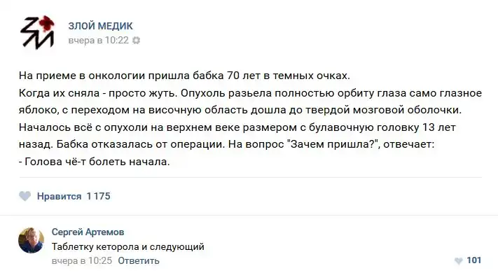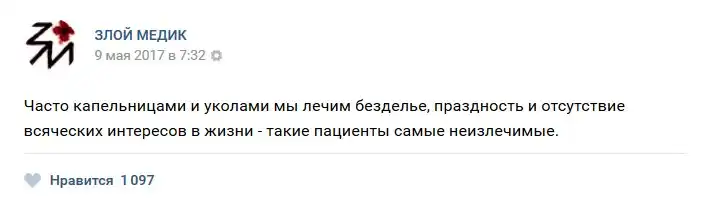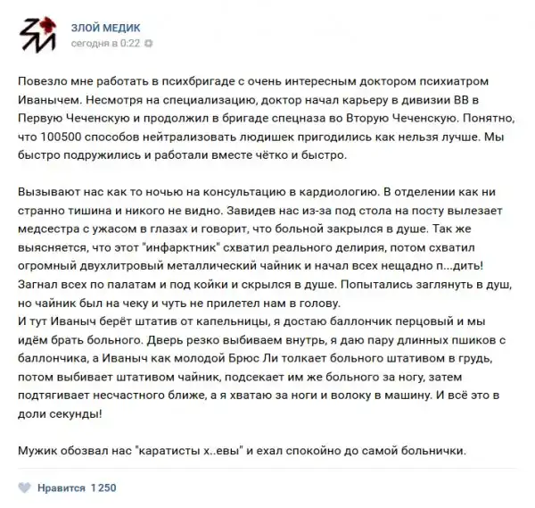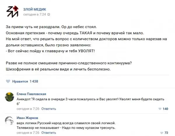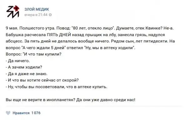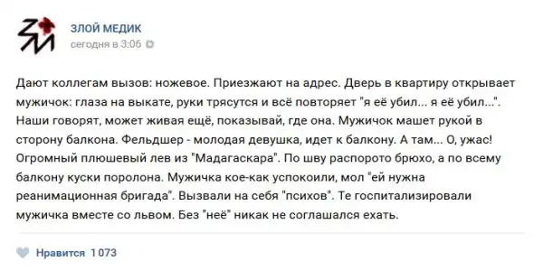 В нашей стране несколько проблем или бед, но к ним не относится медицина, но сегодня мы как раз будем говорить именно о ней. Запись с названием "Истории врачей". Злой медик (25 фото) расскажет Вам о том, какие-же истории происходят с врачами, их пациентами и почему обе категории иногда ведут себя странно.