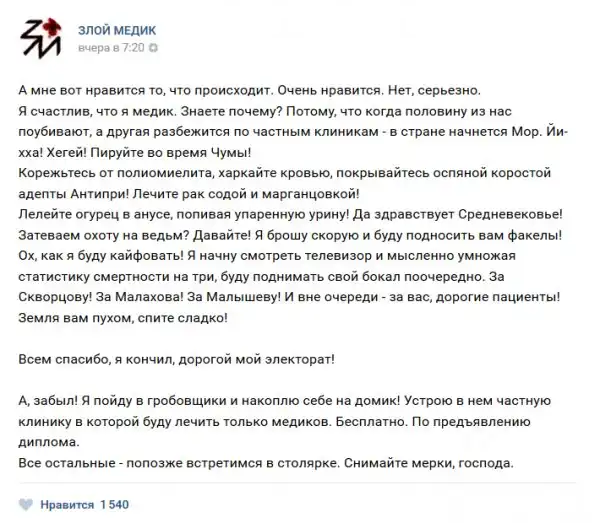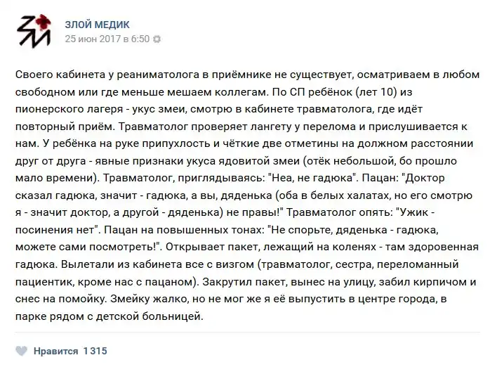 В нашей стране несколько проблем или бед, но к ним не относится медицина, но сегодня мы как раз будем говорить именно о ней. Запись с названием "Истории врачей". Злой медик расскажет Вам о том, какие-же истории происходят с врачами, их пациентами и почему обе категории иногда ведут себя странно.