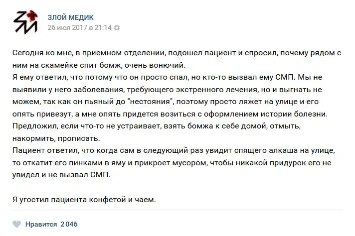 В нашей стране несколько проблем или бед, но к ним не относится медицина, но сегодня мы как раз будем говорить именно о ней. Запись с названием "Истории врачей". Злой медик (25 фото) расскажет Вам о том, какие-же истории происходят с врачами, их пациентами и почему обе категории иногда ведут себя странно.