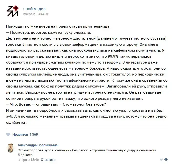 В нашей стране несколько проблем или бед, но к ним не относится медицина, но сегодня мы как раз будем говорить именно о ней. Запись с названием "Истории врачей". Злой медик расскажет Вам о том, какие-же истории происходят с врачами, их пациентами и почему обе категории иногда ведут себя странно.