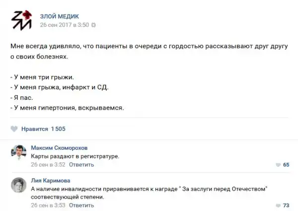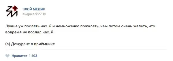 Во-во. У нас в Томске буквально на прошлой неделе в 3-й горбольнице так парень молодой умер. Все его нах.й посылали, и скорая, и врачи приемных отделений. В резельтате он через три дня от банального аппендицита скончался.