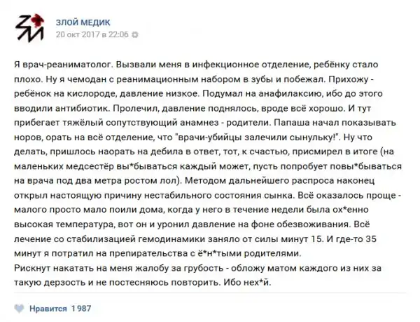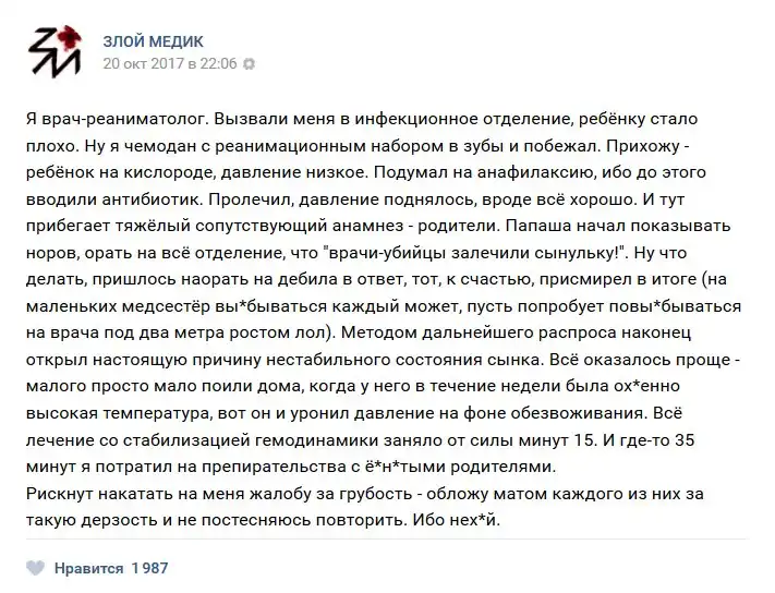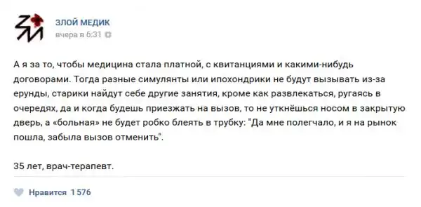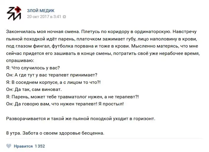 В нашей стране несколько проблем или бед, но к ним не относится медицина, но сегодня мы как раз будем говорить именно о ней. Запись с названием "Истории врачей". Злой медик расскажет Вам о том, какие-же истории происходят с врачами, их пациентами и почему обе категории иногда ведут себя странно.
