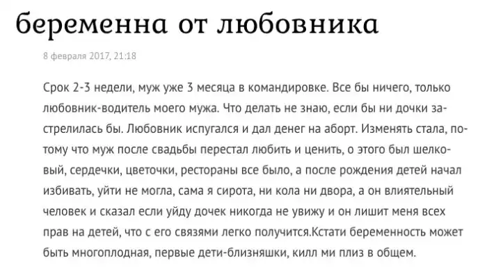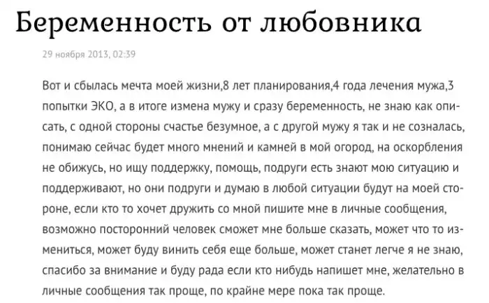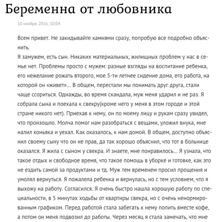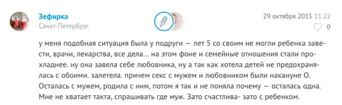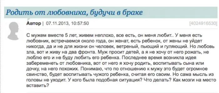 1. Не хочет рожать от мужа, но готова от любовника