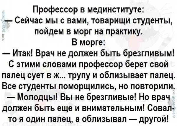 Про морг, совсем по другому, "берёт врач баночку с анализом мочи..."