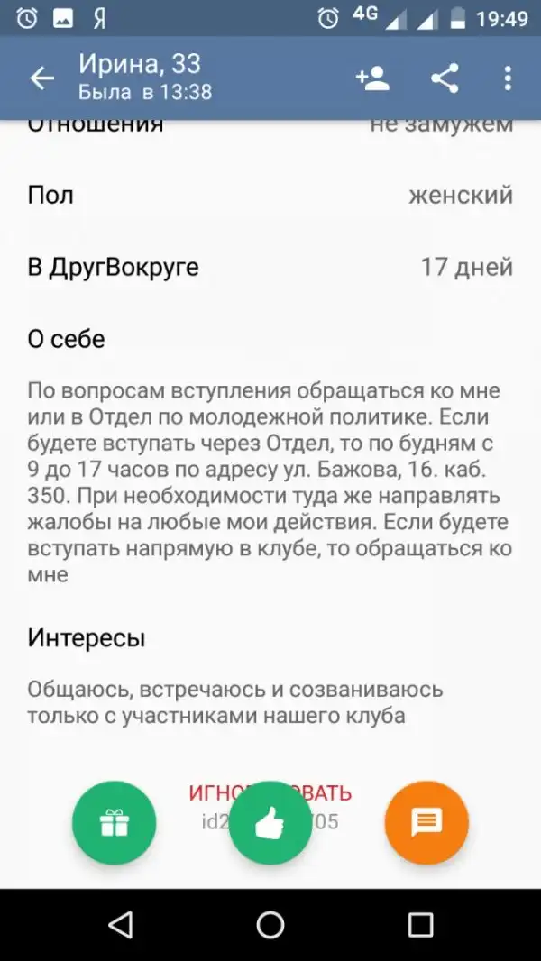 Частенько гоняю по стране по работе и периодически общаюсь в одном приложении с разными барышнями. Ни в коем случае не подумайте, что в целях поиска адюльтера, я женат (если вы понимаете, о чём я). Ну и вот, сегодня забрел в анкету одной мамзель в гэ Сургуте и наткнулся на следующее (ни разу не сталкивался, поэтому решил поделиться, не попадайтесь