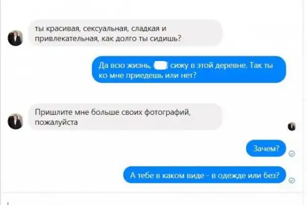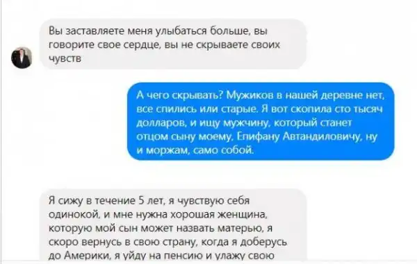 Диана Удовиченко выложила в Facebook переписку с иностранцем, который рьяно пытался завести с ней отношения. Судя по переписке, женихом выступил военный, который применил знания Google‐переводчика, чтобы покорить сердце русской красавицы. Девушка рассказала ему как живется в России, использовав почти все стереотипы про нашу страну.