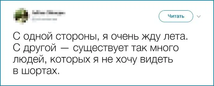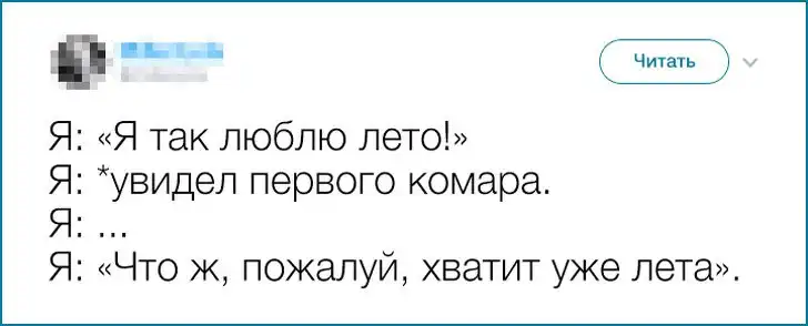 Все мы мечтаем о лете — жарком сезоне, полном приключений и веселья. Наконец-то отправиться в заслуженный отпуск, отдохнуть с дорогими нам людьми и в целом провести лето так, чтобы вспоминать еще целый год. Но в итоге все выглядит совсем иначе. Интернет-пользователи поделились смешными летними реалиями, в которых каждый из нас узнает себя.
