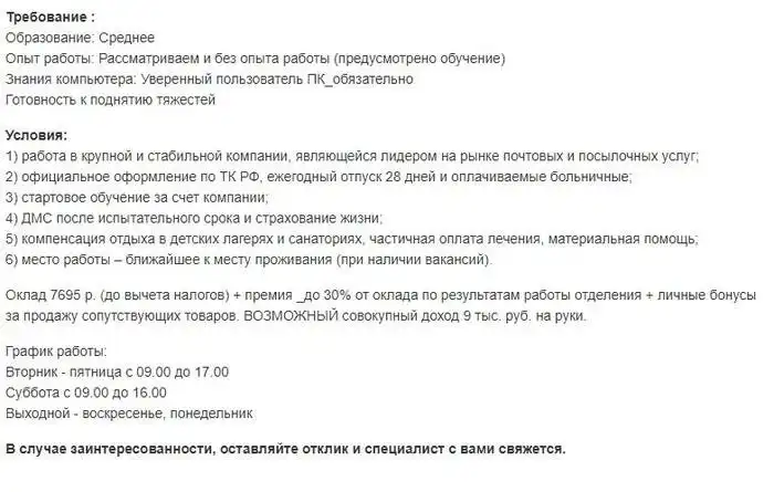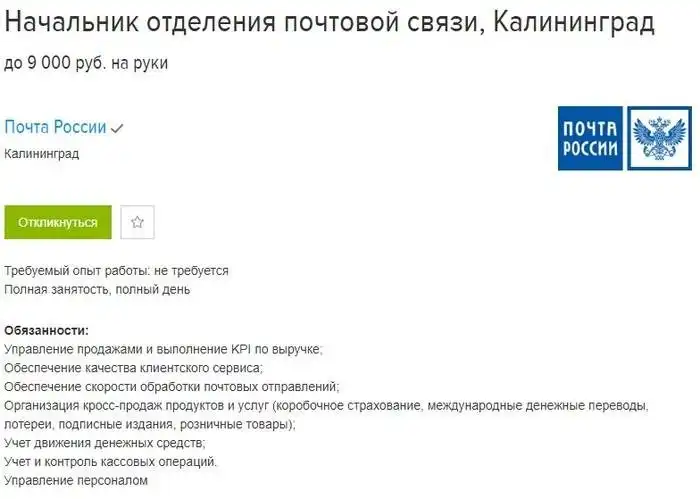 Если вы ищите работу, то советуем взглянуть на это объявление от одной серьезной компании. В одно из отделений Калининграда требуется работник, и вот какие условия труда предлагаются претенденту на эту должность.