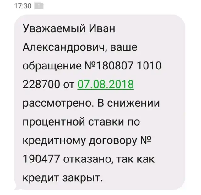 Автор этого поста решил досрочно закрыть кредит в банке, поэтому отправил соответствующую заявку. Ответ от банка не заставил себя долго ждать, чего не скажешь о назначенных сроках рассмотрения заявки, которые почему-то постоянно переносились.